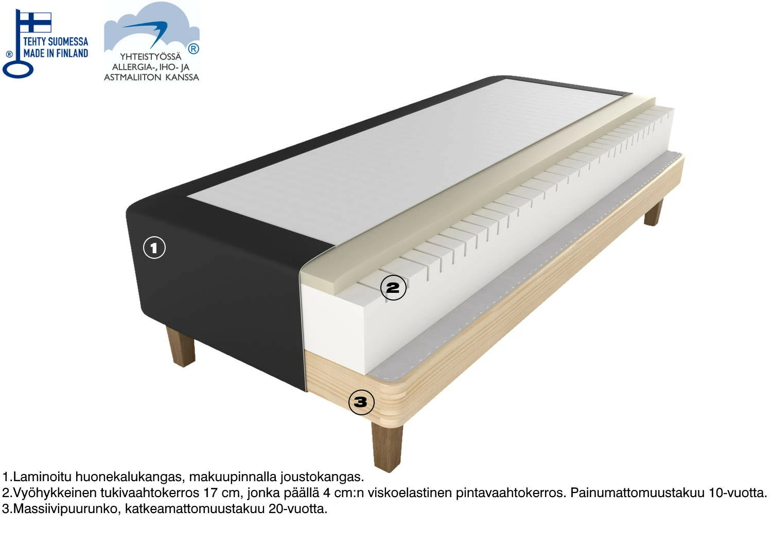 Viskoelastinen pintakerros 4cm. Puurunko.