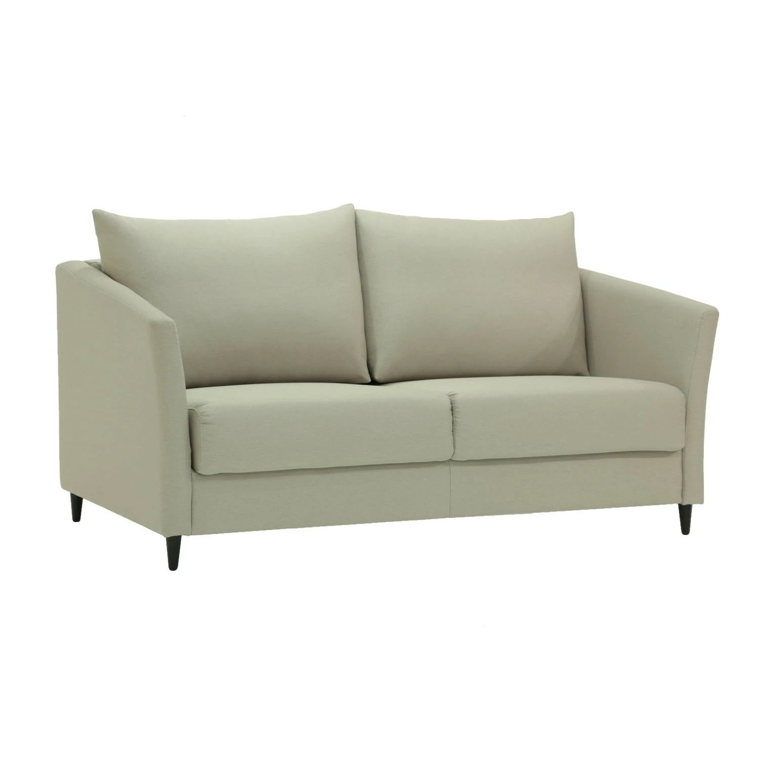 Pohjanmaan Kalusteen valmistamassa Erika-vuodesohvassa on sirot, kaarevat käsinojat ja korkeat jalat, jotka yhdessä antavat sohvalle kauniin kevyen ilmeen.