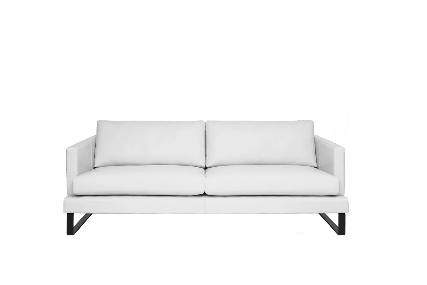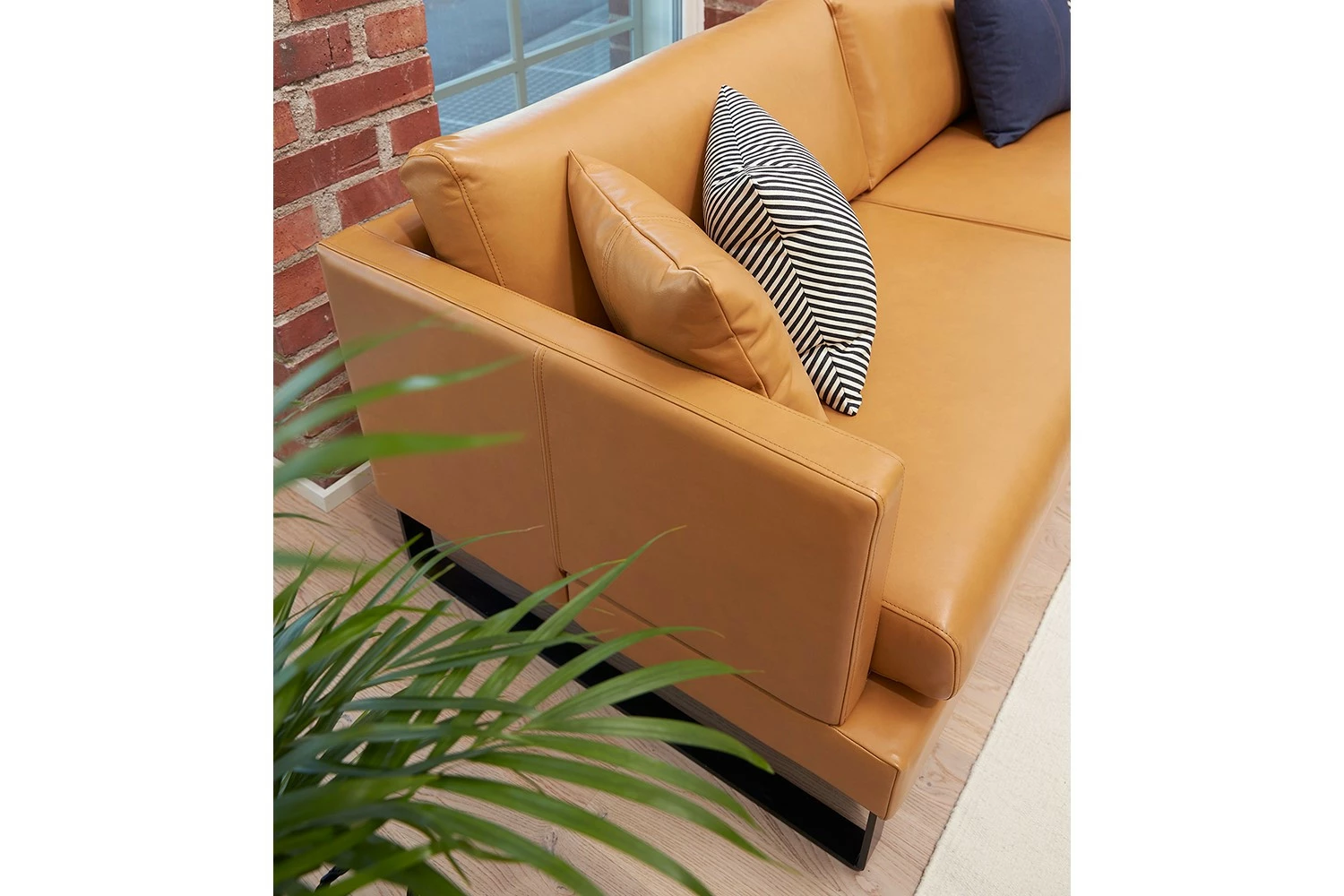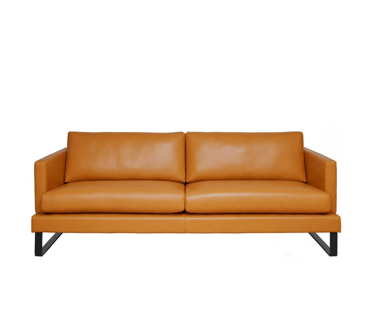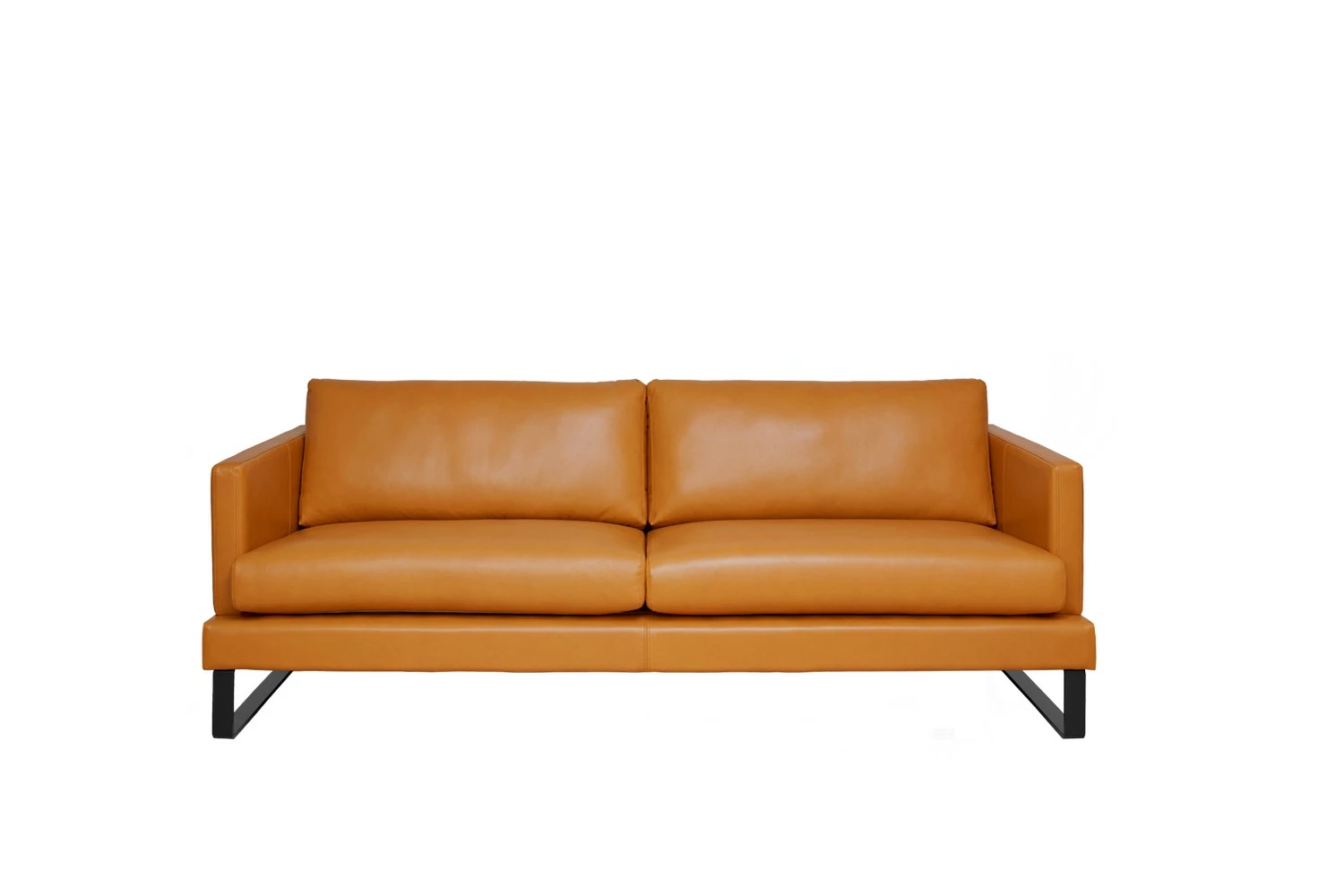 FinSoffien Helsinki- sohva on verhoiltu kokonaan aidolla nahalla. Valittavanasi on kolme upeaa vaihtoehtoa konjakinruskeasta aina tyylikkääseen mustaan.