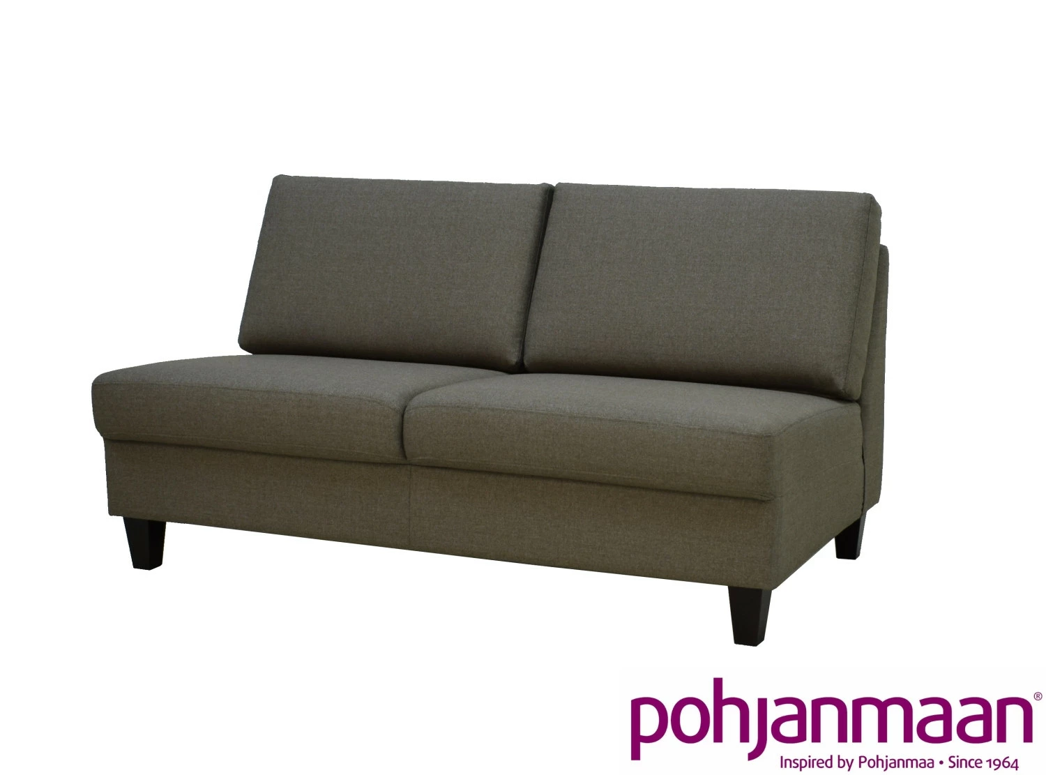 Jokainen sohva-moduli omilla jaloilla ja alas asti verhoiltu.
