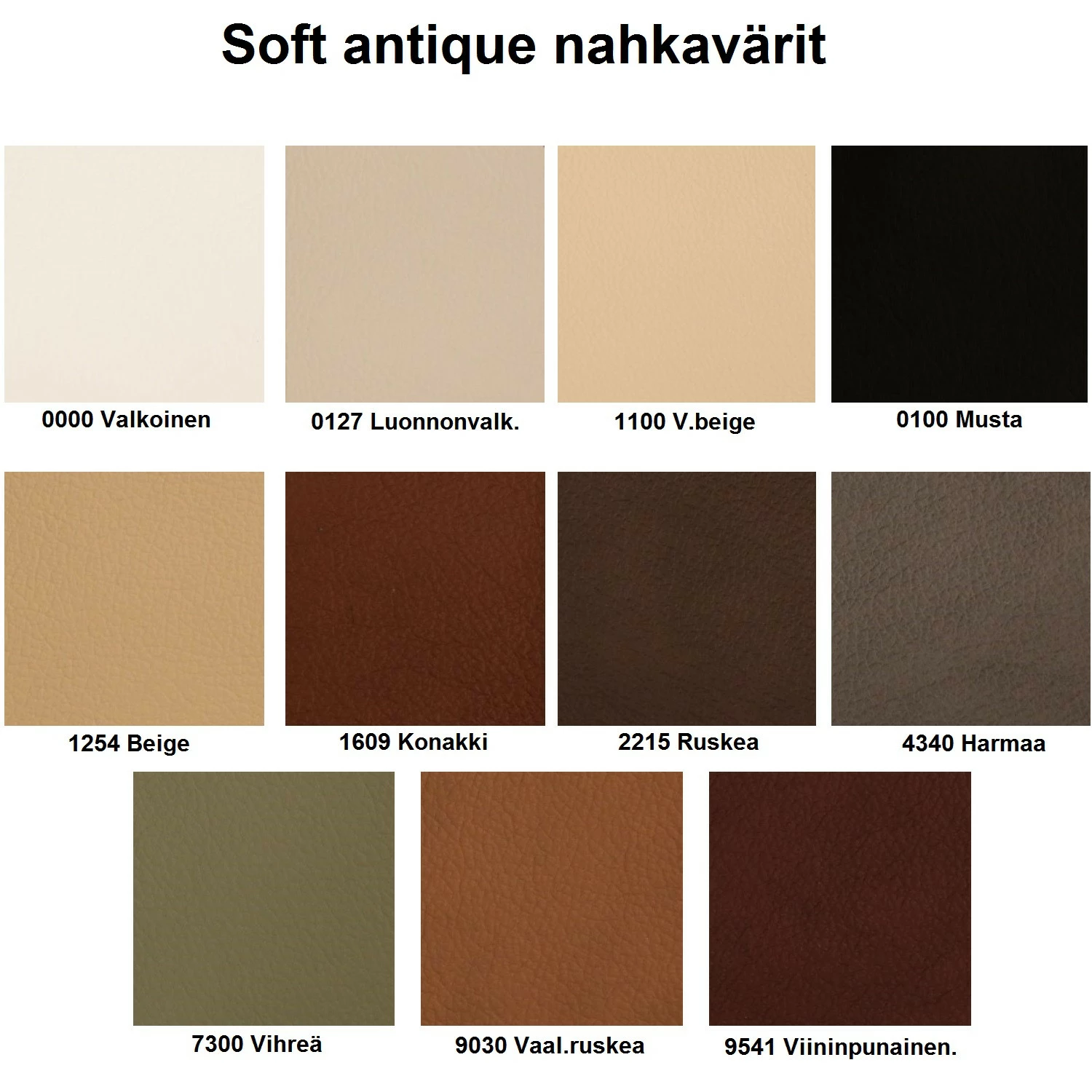 Kaikki kulutuspinnat verhoiltu kestävällä soft antique nahalla, taustat ovat keinonahkaa.