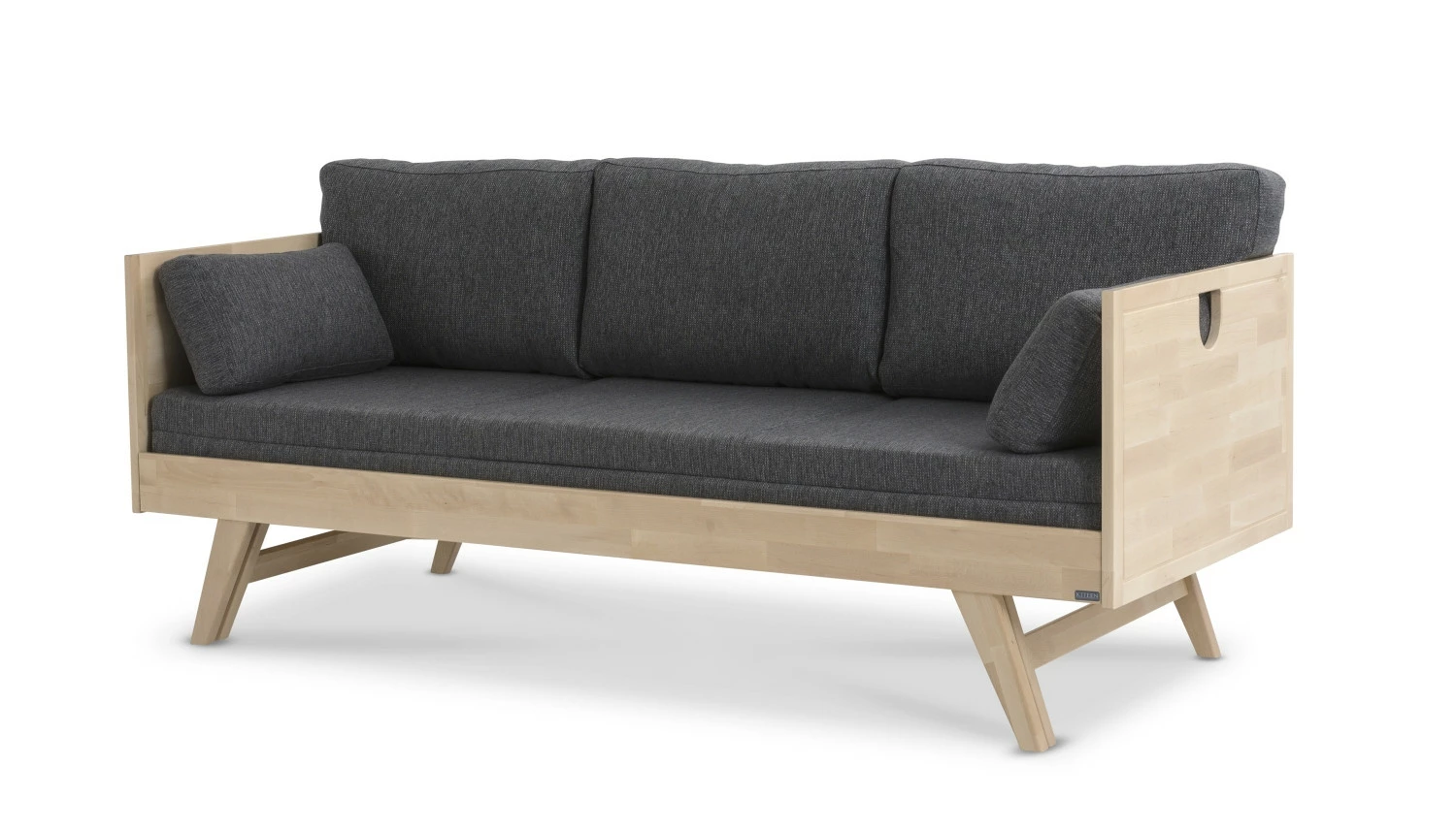 Valittavanasi on harmaan tai beigen väriset patjat, jotka molemmat sopivat kauniisti yhteen luonnollisen koivun kanssa.
