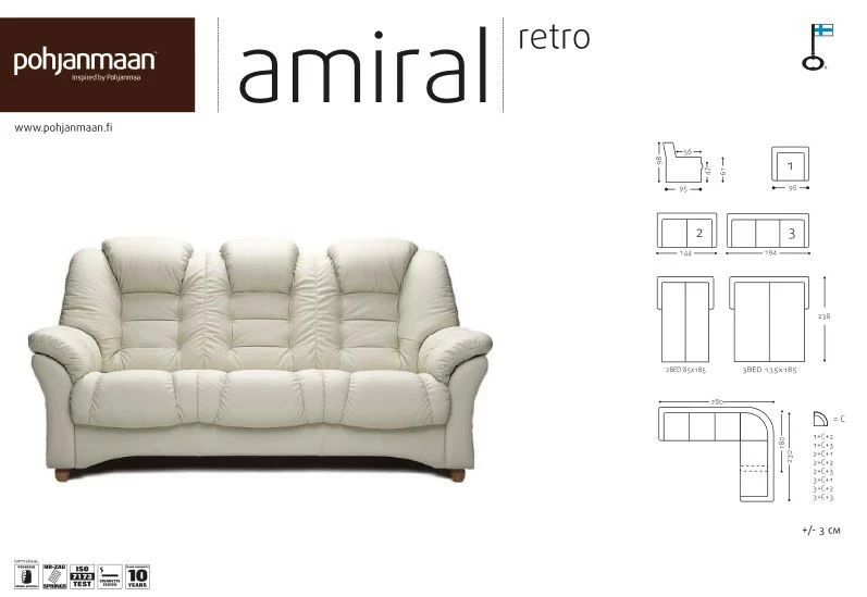 Amiral mallista löytyy myös kulmasohvia, recliner tuolit ja 2-istuttava sohva.