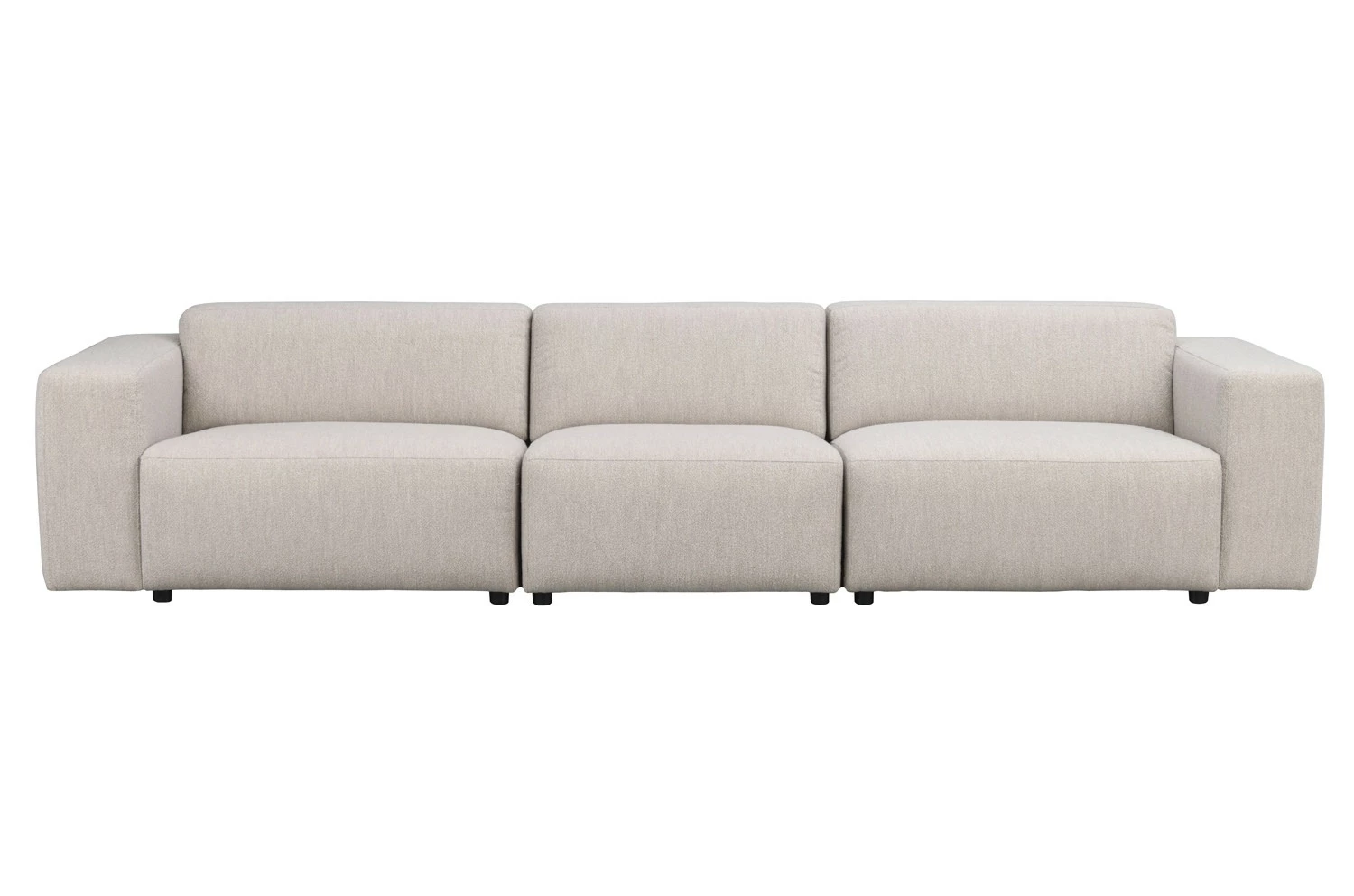 Iso Willard 4-istuttava sohva on moderni oleskelusohva kotisi olohuoneeseen tai tv-huoneeseen. Tässä kauniissa sohvassa verhoilukankaana on buklee tyylinen Alice kangas vaalean beigen värisenä. Kauniisti muotoiltu vaalea sohva luo kotiisi modernin skandinaavisen tunnelman.