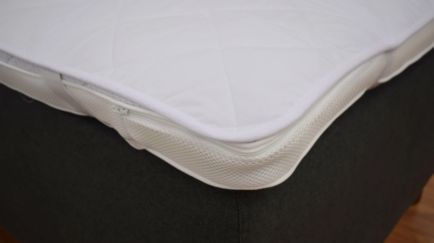 Petauspatjan päälle kiinnitettävä suojus helpottaa vuoteen puhtaanapitoa. Kumilenkeillä kulmista kiinnitettävä suojus on helppo irroittaa ja voidaan pestä kotikoneessa 95 asteessa.
