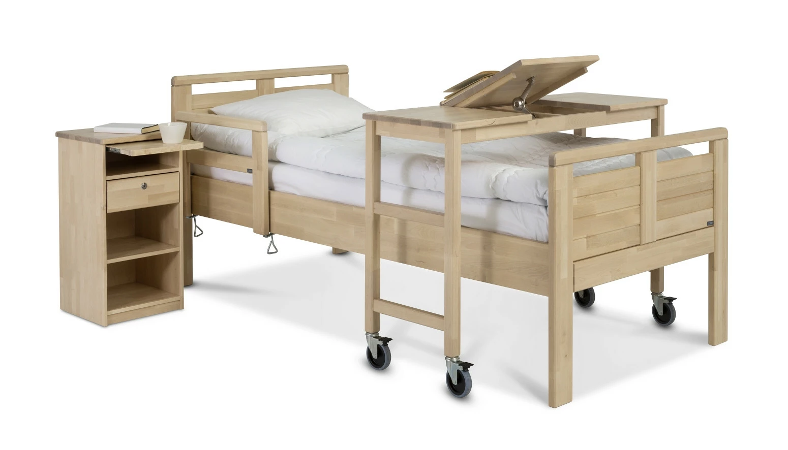 Tuotekuvissa esiintyvät nousutuet, turvalaidat ja yöpöydät myydään erikseen.