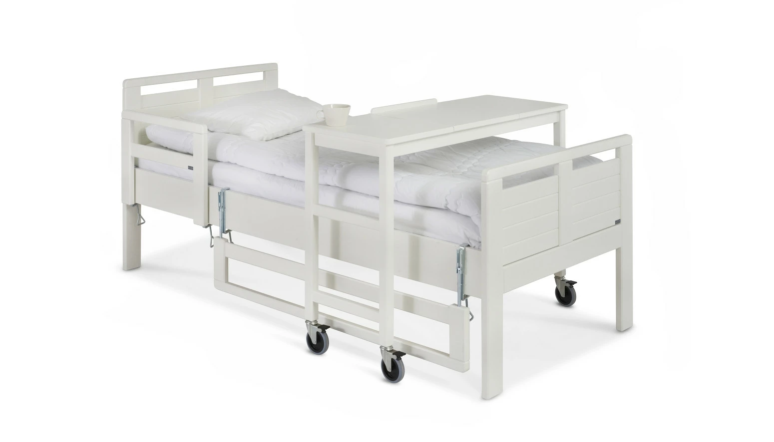 Tuotekuvissa esiintyvät nousutuet, turvalaidat ja yöpöydät myydään erikseen.
