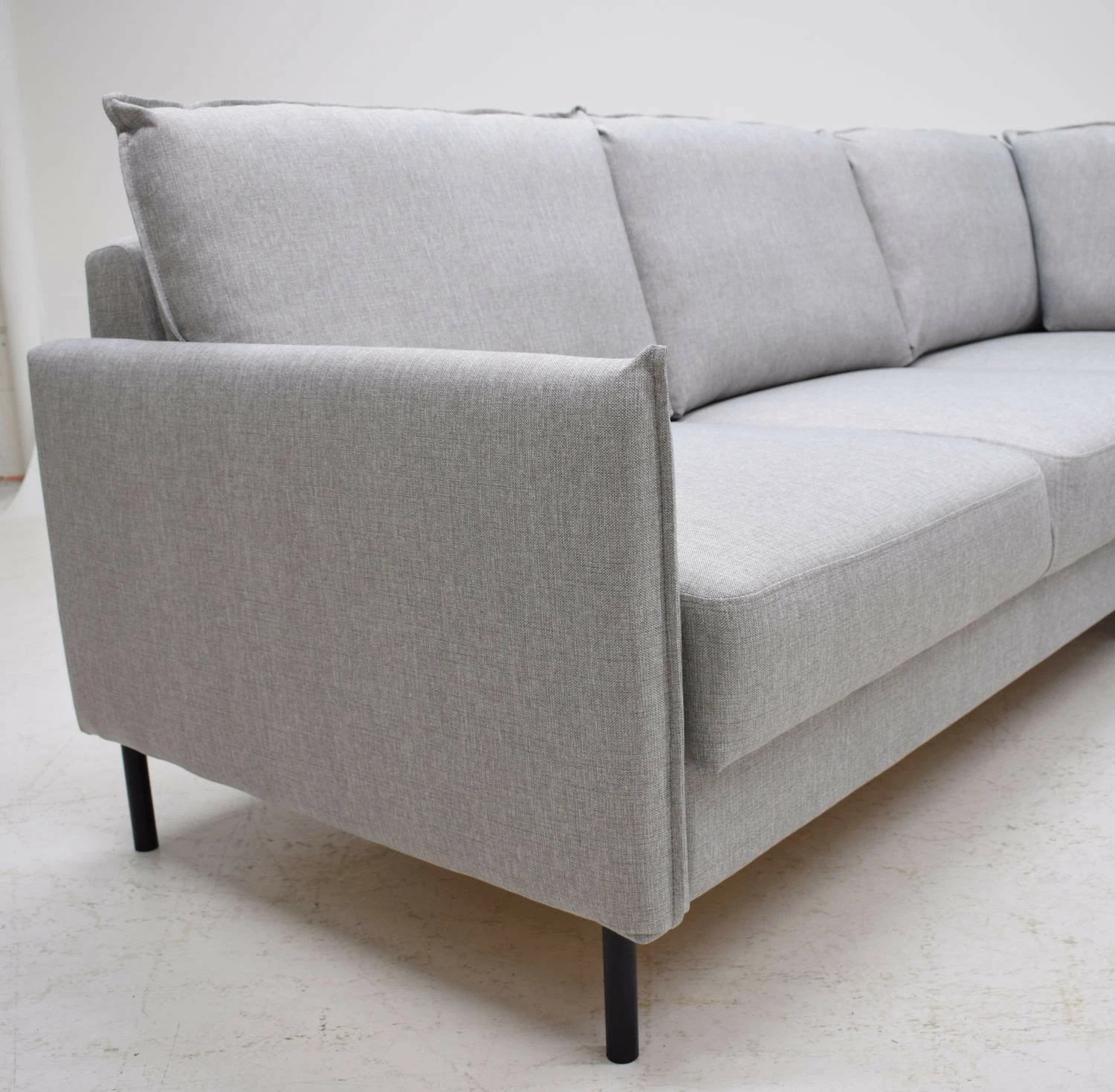 Tommy sohvassa on korkeat mustat metallijalat, jotka antavat sille kevyen ilmeen ja sohvan alusta on helppo pitää puhtaana.